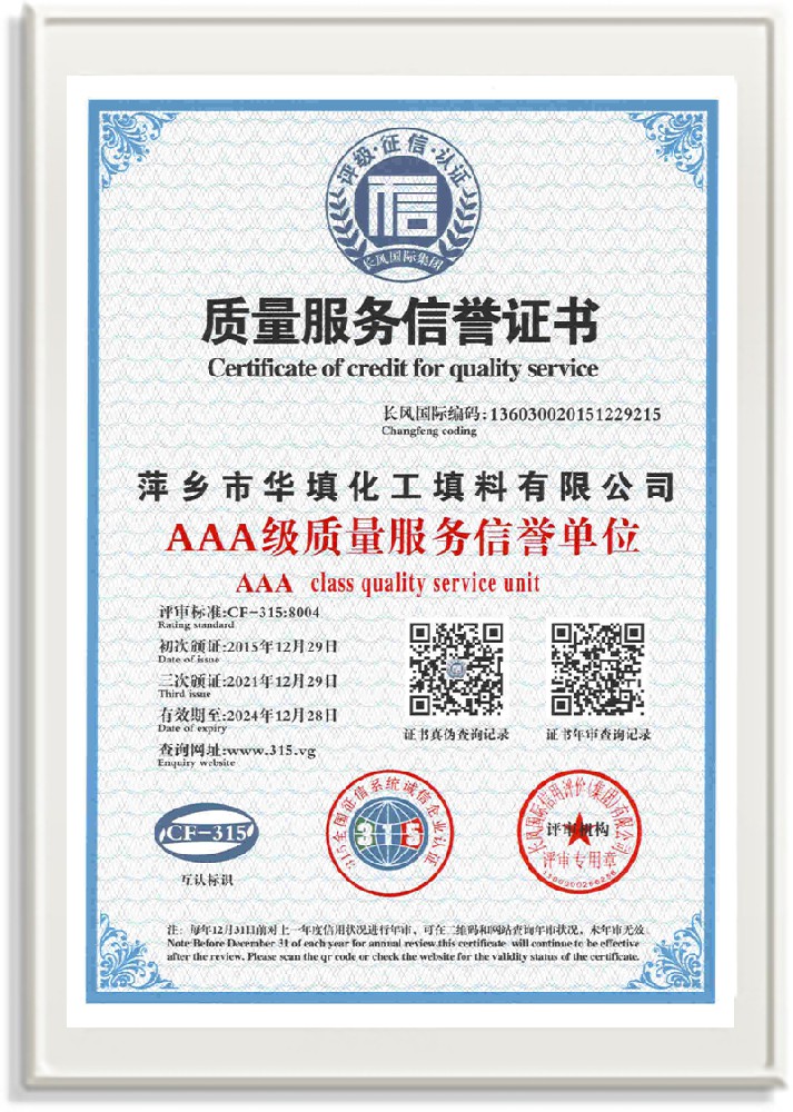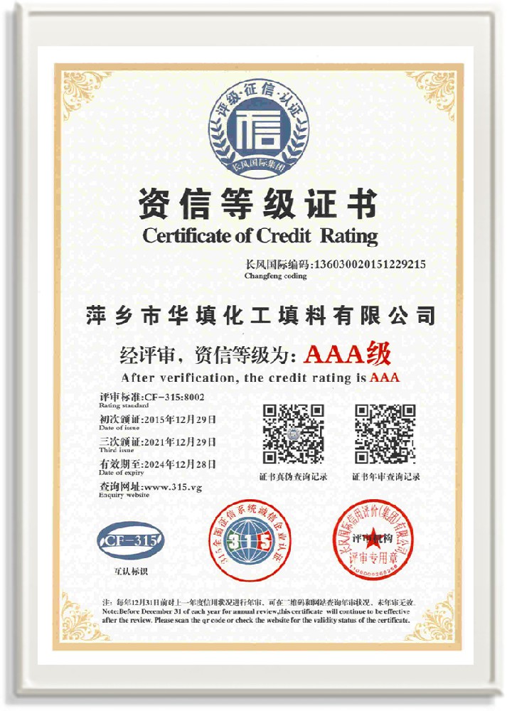 萍鄉(xiāng)市華填化工填料有限公司,位于320國道、109國道、浙贛鐵路、昌金高速公路貫穿其中,交通便利,是江西西部一顆燦爛明珠,創(chuàng)建于20世紀70年代初期,是中國石油天然氣股份有限公司“能源一號網”會員企業(yè)、中國石化物資采購電子商務網絡和中國海洋石油總公司采辦業(yè)務系統(tǒng)成員單位,是上海大學江西材料基因組工程產業(yè)研究院工業(yè)陶瓷產業(yè)創(chuàng)新聯(lián)盟基地,且通過ISO9001:2015質量管理體系、ISO14001:2015環(huán)境管理體系、ISO45001:2018職業(yè)健康安全管理體系認證的化工填料生產企業(yè)。公司擁有陶瓷、塑料、金屬填料、催化劑、活性氧化鋁、分子篩等產品生產線,現(xiàn)有固定資產3616萬元,占地面積3.8萬平方米。公司具有悠久的生產歷史、雄厚的技術力量和先進的生產工藝設備,可生產工業(yè)瓷球(支撐劑)、陶瓷、金屬、塑料質的規(guī)整、散堆化工填料及分子篩、催化劑、生化濾料、活性氧化鋁、石化助劑、活性炭、環(huán)保材料、耐火材料等系列的200多種規(guī)格型號產品。